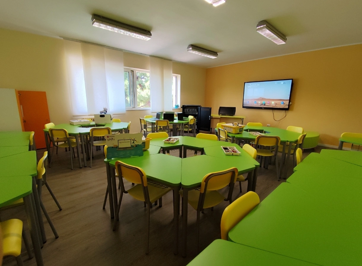 Al primo piano sono presenti altre aule di Scuola Primaria e un’ aula STEAM.