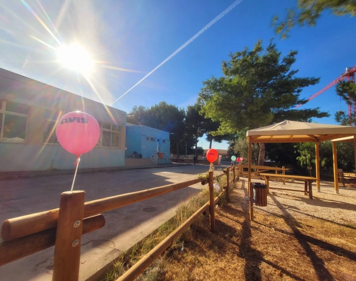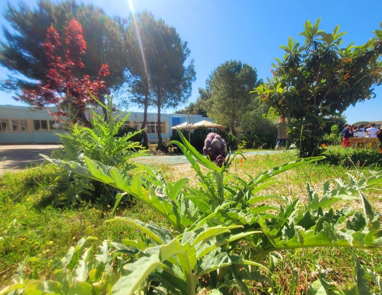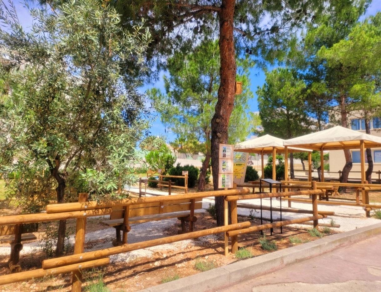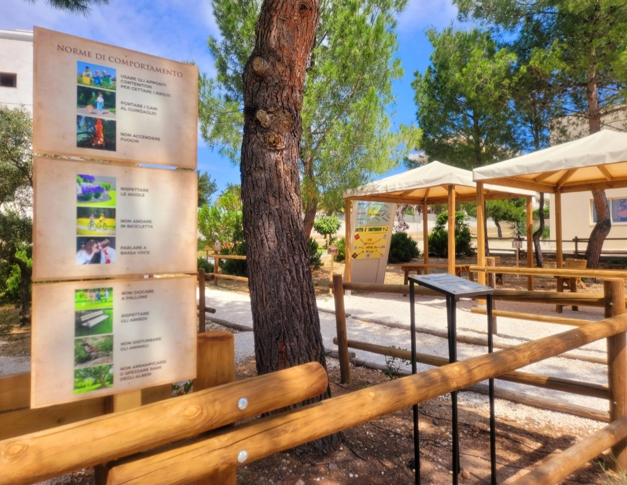 E’ circondato da un ampio cortile, all’interno del quale è presente il Giardino Didattico “Giuseppe Caggiano”, attrezzato con gazebo, panchine e un orto botanico.