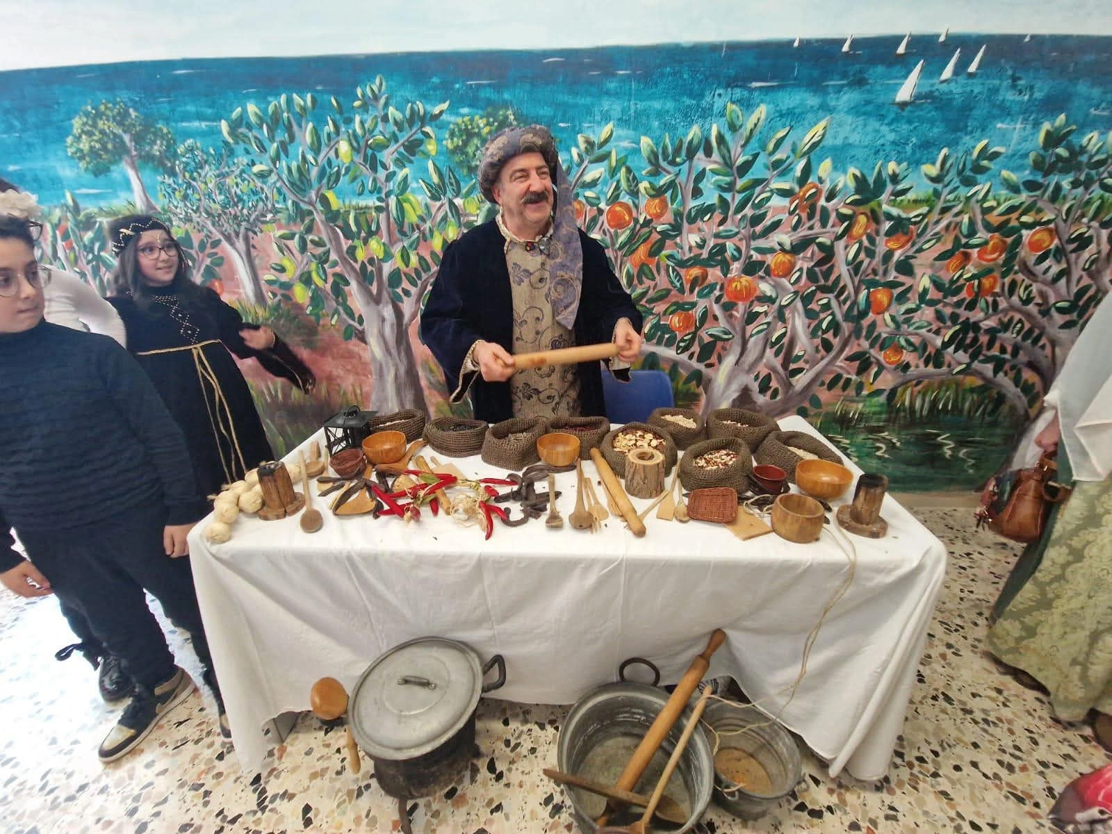 – Bancarelle espositive con prodotti realizzati dagli alunni ispirati al Medioevo.